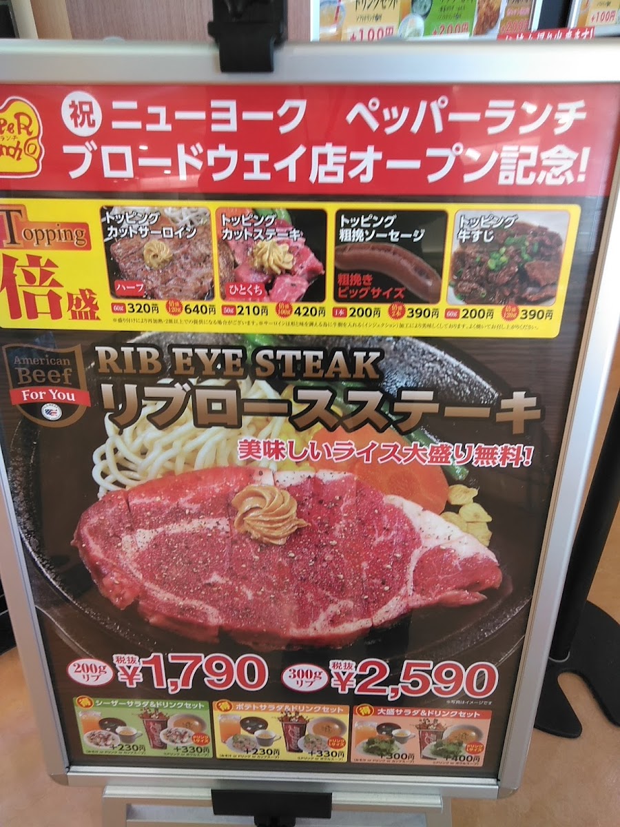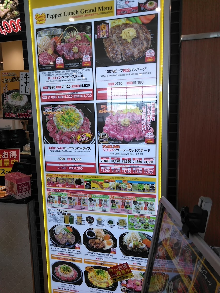 From a reviewer's perspective, the menu at Pepper Lunch in Miyakonojo offers a concise but satisfying range of weekday lunch options that cater to both steak lovers and rice enthusiasts. Highlights include the 【Weekday Only】Kalbi Yakiniku Lunch Set, which promises tender, flavorful beef, and the versatile 【Weekday Only】Beef Pepper Rice Sets, available in S, M, and L portions to suit different appetites. For those craving a heartier meal, the 【Weekday Only】Wild Juicy Steak Set (110g) delivers a generous, perfectly seared portion of steak, maintaining the restaurant’s signature sizzling presentation. Across these offerings, the menu emphasizes fresh, hot servings where the meat and rice retain their natural flavors, enhanced only by the restaurant’s signature pepper seasoning. While the selections are limited, they are carefully curated to ensure each dish embodies the straightforward, interactive dining experience Pepper Lunch is known for. Overall, the menu balances portion variety with a focus on quality, making it an accessible yet satisfying choice for weekday diners seeking both flavor and value.